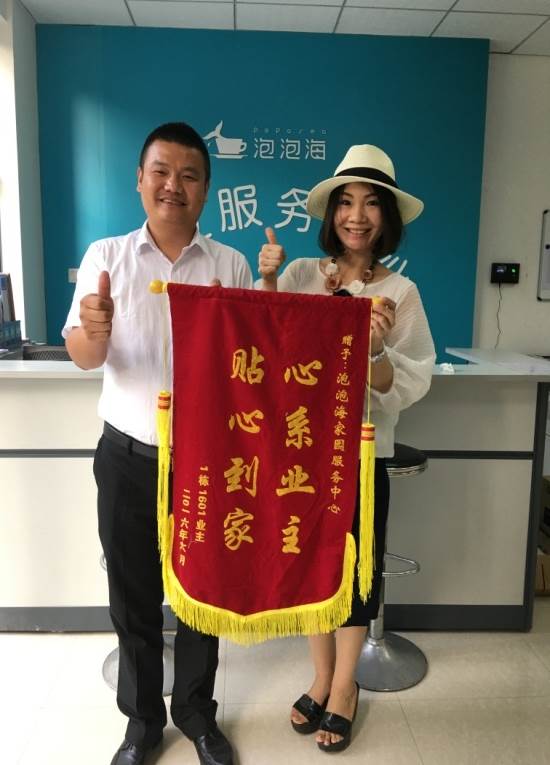 2016年6月24日下午,泡泡家園小區(qū)1棟1601業(yè)主向物業(yè)服務(wù)中心贈送了一面“心系業(yè)主、貼心到家”的錦旗,以表達(dá)小區(qū)業(yè)主對泡泡海家園服務(wù)中心所做工作的高度肯定和感激,物業(yè)服務(wù)中心將“心系業(yè)主,貼心到家”落到實(shí)處,全心全意為業(yè)主排憂解難。