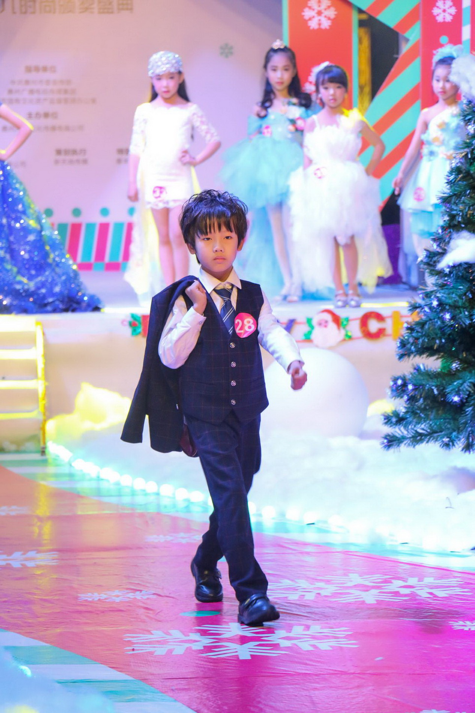 比賽現場的熱鬧氣氛,讓這個原本有點冷的圣誕節(jié)變得很溫暖。寶貝們的時尚潮范兒走秀表演,酷酷的表情,萌萌的臉蛋,時尚的裝扮,讓現場沸騰不已,歡呼聲不斷。潮寶們稚嫩的聲音,炫酷的才藝展示,在舞臺上光芒四色,萌化全場人心,而其陽光活力的氣息更感染者現場的每一位觀眾。