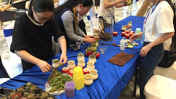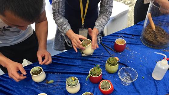 平時忙于工作的參與者,沒有充裕的時間親自動手,看到這些植物早已迫不及待地開始選盆、培土、植株,一派其樂融融。大家紛紛自己現場DIY一盆盆多肉植物,然后帶回家。
