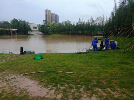 經(jīng)過大家的共同努力奮戰(zhàn),采取破路降水、新增排洪管道、水泵抽排、引排至大亞灣大道總排水管等措施處理應(yīng)急洪水,截至今日內(nèi)湖水位標(biāo)高已有顯著下降效果,解除了大小高樣板房被水浸泡的危機。目前大家仍在密切巡查現(xiàn)場,關(guān)注內(nèi)外湖水位變化,隨時準(zhǔn)備應(yīng)急措施,同時組織各單位逐步清理和恢復(fù)被臺風(fēng)破壞的園林景觀等場地。