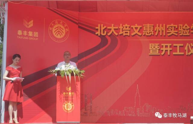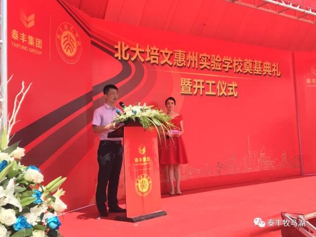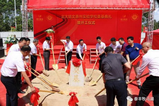 2017年6月8日上午9點(diǎn),由泰豐集團(tuán)在泰豐·牧馬湖斥巨資打造的重量級教育配套——北大培文惠州實驗學(xué)校舉行盛大奠基儀式。出席儀式的有大亞灣管委會副書記:張?zhí)聿畔壬换葜荽髮W(xué)校長:彭永宏先生;大亞灣管委會副主任:楊遠(yuǎn)輝先生;大亞灣宣教局局長:曾文浪先生;北大培文副總裁、陽光教育集團(tuán)總經(jīng)理:徐揚(yáng)華先生;北京大學(xué)原教務(wù)長:吳寶科先生;北大附中原校長:趙鈺琳先生;陽光教育集團(tuán)廣東總校長:樊瑞先生;北大培文貴州總校長:沈連柱先生;泰豐集團(tuán)董事長:吳李彬先生;泰豐地產(chǎn)副董事長兼總裁:袁毅先生;泰豐地產(chǎn)董事:許浩先生;惠州市豐泰城房地產(chǎn)有限公司董事:陳閣洲先生;以及泰豐集團(tuán)的各位領(lǐng)導(dǎo)和合作單位的各位嘉賓。