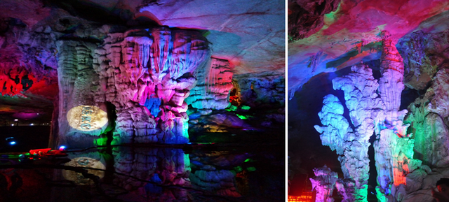 洞中有洞、有河、有橋,鐘乳石在燈光的影射下,展現(xiàn)出千姿百態(tài)、瑰麗多彩、神秘莫測之態(tài)勢。
