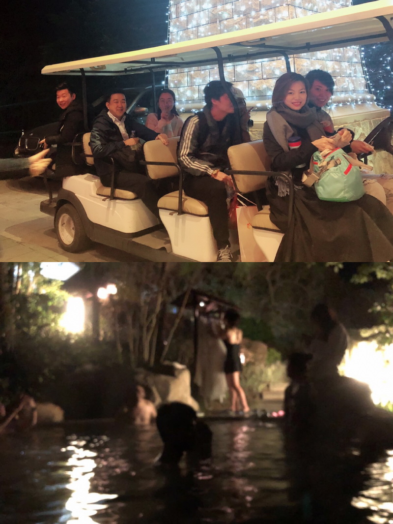 歷經(jīng)兩個半小時的車程,終于抵達目的地??粗徊薀粞b飾的燈火通明的酒店,想著熱氣騰騰的溫泉。也早已拋開長時間車程帶來的疲憊。換好行裝,結(jié)伴前往各式各樣的溫泉池:牛奶池、玫瑰池、紅酒池、親親魚療池……走在鵝卵石鋪好的小路,穿梭于綠樹從間,大家享受著屬于夜間的寧靜與愉悅。